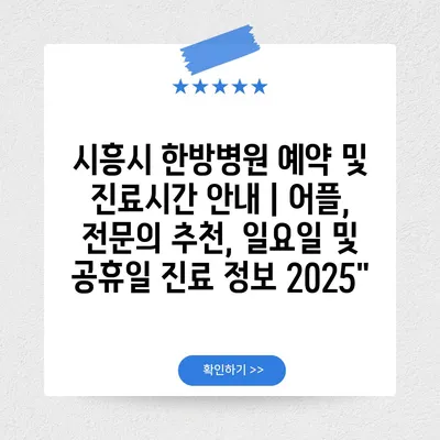 시흥시 한방병원 예약 및 진료시간 공지 | 어플, 전연락 추천, 일요일 및 공휴일 진료 정보 2025