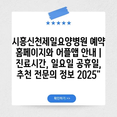 시흥신천제일요양병원 예약 홈페이지와 어플앱 공지 | 진료시간, 일요일 공휴일, 추천 전연락 정보 2025