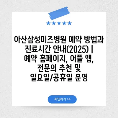 ✅ 아산삼성미즈병원의 예약 방법과 진료시간을 놓치지 마세요.