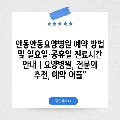 ✅ 안동안동요양병원 예약 방법을 지금 바로 알아보세요!