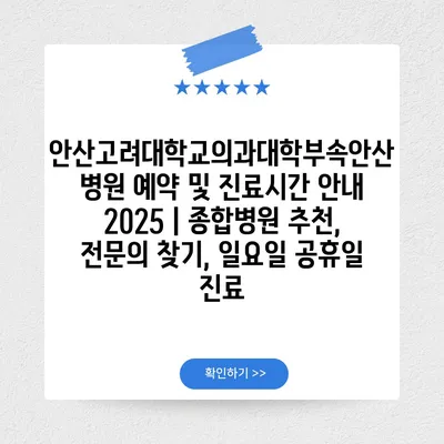 안산고려대학교의과대학부속안산병원 예약 및 진료시간 공지 2025 | 종합병원 추천, 전연락 찾기, 일요일 공휴일 진료 에 대해 자주 묻는 질문 TOP 5