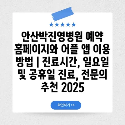 안산박진영병원 예약 홈페이지와 어플 앱 이용 방법 | 진료시간, 일요일 및 공휴일 진료, 전연락 추천 2025에 대해 알아보겠습니다.