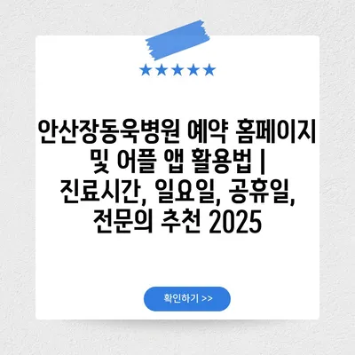 안산장동욱병원 예약 홈페이지 및 어플 앱 활용법 | 진료시간, 일요일, 공휴일, 전연락 추천 2025 에 대해 자주 묻는 질문 TOP 5