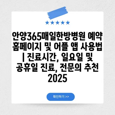 안양365매일한방병원 예약 홈페이지 및 어플 앱 사용법 | 진료시간, 일요일 및 공휴일 진료, 전연락 추천 2025에 대해 알아보겠습니다.