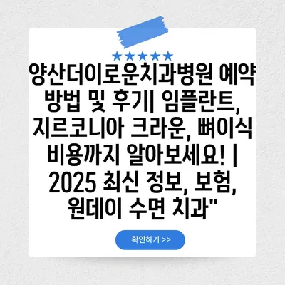 양산더이로운치과병원 예약 방법 및 후기| 임플란트, 지르코니아 크라운, 뼈이식 비용까지 알아보세요! | 2025 최신 정보, 보험, 원데이 수면 치과
