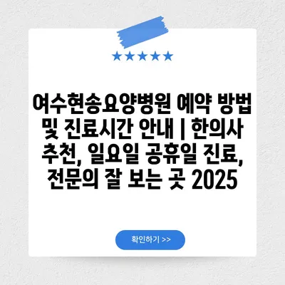 여수현송요양병원 예약 방법 및 진료시간 공지 | 한의사 추천, 일요일 공휴일 진료, 전연락 잘 보는 곳 2025 에 대해 자주 묻는 질문 TOP 5