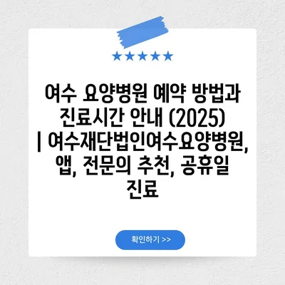 여수 요양병원 예약 방법과 진료시간 공지 (2025) | 여수재단법인여수요양병원, 앱, 전연락 추천, 공휴일 진료 에 대해 자주 묻는 질문 TOP 5