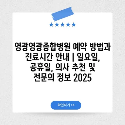 영광영광종합병원 예약 방법과 진료시간 공지 | 일요일, 공휴일, 의사 추천 및 전연락 정보 2025 에 대해 자주 묻는 질문 TOP 5
