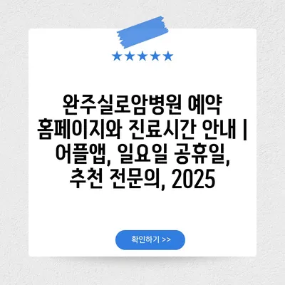 완주실로암병원 예약 홈페이지와 진료시간 공지 | 어플앱, 일요일 공휴일, 추천 전연락, 2025 에 대해 자주 묻는 질문 TOP 5