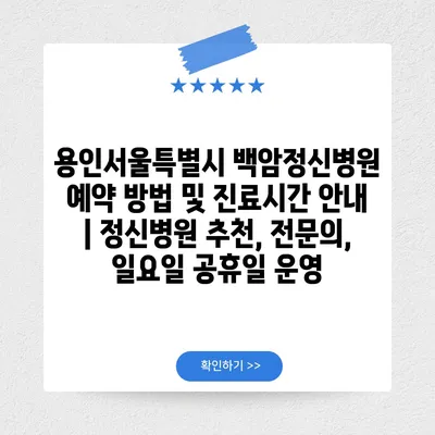 용인서울특별시 백암정신병원 예약 방법 및 진료시간 공지 | 정신병원 추천, 전연락, 일요일 공휴일 운영 에 대해 자주 묻는 질문 TOP 5