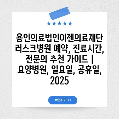 용인의료법인이젠의료재단 러스크병원 예약, 진료시간, 전연락 추천 설명서 | 요양병원, 일요일, 공휴일, 2025에 대해 알아보겠습니다.
