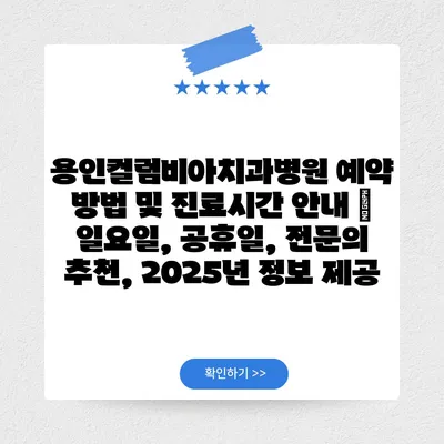 용인컬럼비아치과병원 예약 방법 및 진료시간 공지 | 일요일, 공휴일, 전연락 추천, 2025년 정보 제공 에 대해 자주 묻는 질문 TOP 5