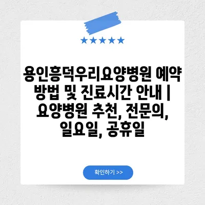 용인흥덕우리요양병원 예약 방법 및 진료시간 공지 | 요양병원 추천, 전연락, 일요일, 공휴일 에 대해 자주 묻는 질문 TOP 5