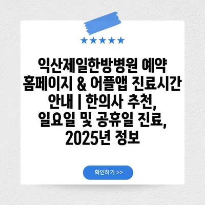 ✅ 익산제일한방병원의 진료시간과 예약 방법을 알아보세요.