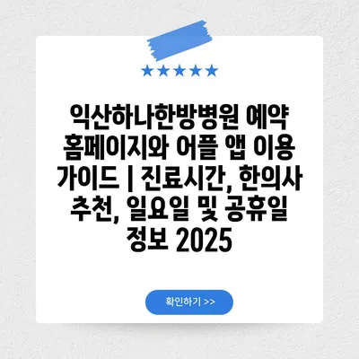 ✅ 익산하나한방병원의 진료 시간과 예약 정보를 지금 바로 확인해 보세요.