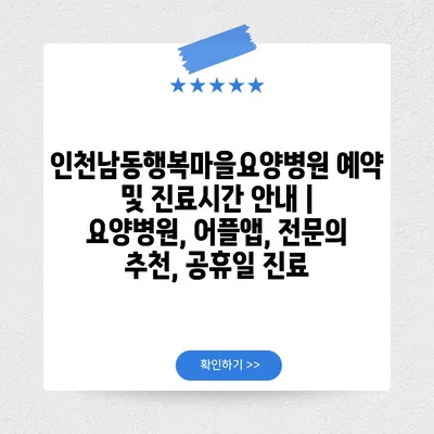 인천남동행복마을요양병원 예약 방법을 지금 바로 알아보세요!