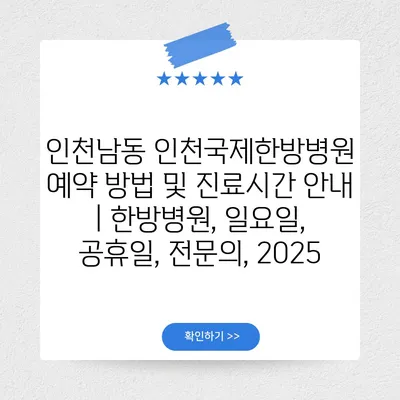 인천남동 인천국제한방병원 예약 방법 및 진료시간 공지 | 한방병원, 일요일, 공휴일, 전연락, 2025 에 대해 자주 묻는 질문 TOP 5