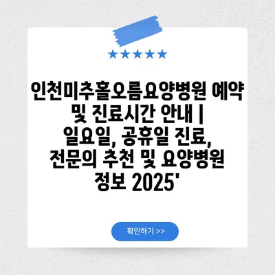 인천미추홀오름요양병원 예약 및 진료시간 안내 | 일요일, 공휴일 진료, 전문의 추천 및 요양병원 정보 2025′