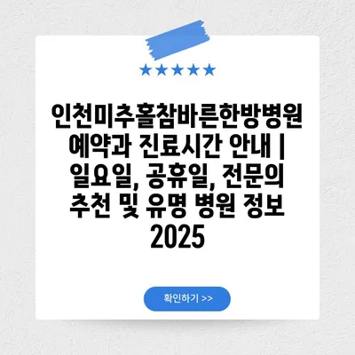 인천미추홀참바른한방병원 예약과 진료시간 공지 | 일요일, 공휴일, 전연락 추천 및 유명 병원 정보 2025 에 대해 자주 묻는 질문 TOP 5
