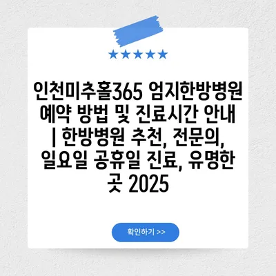 인천미추홀365 엄지한방병원 예약 방법 및 진료시간 공지 | 한방병원 추천, 전연락, 일요일 공휴일 진료, 유명한 곳 2025 에 대해 자주 묻는 질문 TOP 5
