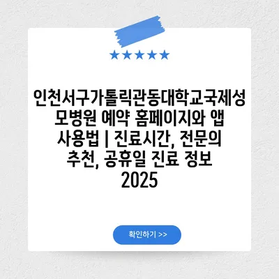 인천서구가톨릭관동대학교국제성모병원 예약 홈페이지와 앱 사용법 | 진료시간, 전연락 추천, 공휴일 진료 정보 2025에 대해 알아보겠습니다.