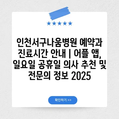 인천서구나움병원 예약과 진료시간 공지 | 어플 앱, 일요일 공휴일 의사 추천 및 전연락 정보 2025에 대해 알아보겠습니다.