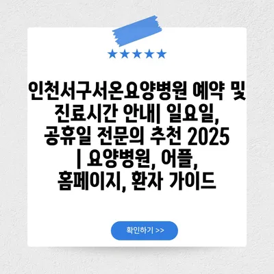 인천서구서온요양병원 예약 및 진료시간 공지| 일요일, 공휴일 전연락 추천 2025 | 요양병원, 어플, 홈페이지, 환자 설명서 에 대해 자주 묻는 질문 TOP 5