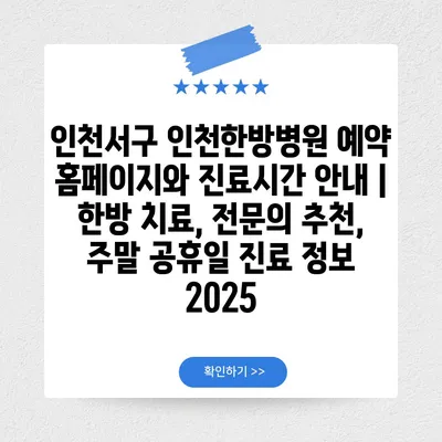 인천서구 인천한방병원 예약 홈페이지와 진료시간 공지 | 한방 치료, 전연락 추천, 주말 공휴일 진료 정보 2025 에 대해 자주 묻는 질문 TOP 5