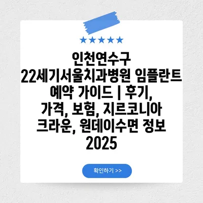 인천연수구 22세기서울치과병원 임플란트 예약 설명서 | 후기, 가격, 보험, 지르코니아 크라운, 원데이수면 정보 2025에 대해 알아보겠습니다.