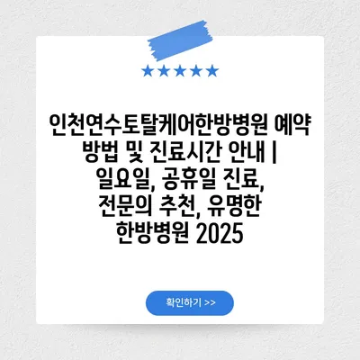 인천연수토탈케어한방병원 예약 방법 및 진료시간 공지 | 일요일, 공휴일 진료, 전연락 추천, 유명한 한방병원 2025 에 대해 자주 묻는 질문 TOP 5