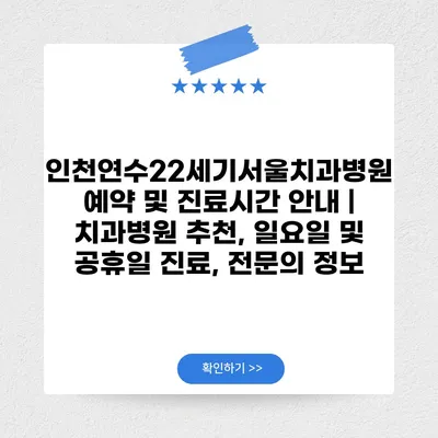 인천연수22세기서울치과병원 예약 및 진료시간 공지 | 치과병원 추천, 일요일 및 공휴일 진료, 전연락 정보 에 대해 자주 묻는 질문 TOP 5