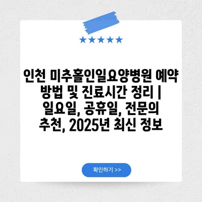 인천 미추홀인일요양병원 예약 방법 및 진료시간 정리 | 일요일, 공휴일, 전연락 추천, 2025년 최신 정보 에 대해 자주 묻는 질문 TOP 5
