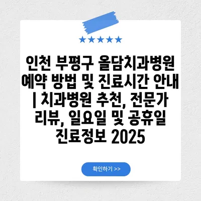 인천 부평구 올담치과병원 예약 방법 및 진료시간 공지 | 치과병원 추천, 전문가 리뷰, 일요일 및 공휴일 진료정보 2025 에 대해 자주 묻는 질문 TOP 5