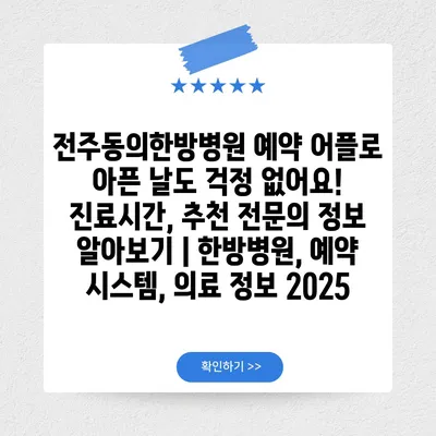 전주동의한방병원 예약 어플로 아픈 날도 걱정 없어요! 진료시간, 추천 전연락 정보 알아보기 | 한방병원, 예약 시스템, 의료 정보 2025 에 대해 자주 묻는 질문 TOP 5