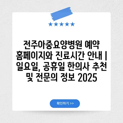 전주아중요양병원 예약 홈페이지와 진료시간 공지 | 일요일, 공휴일 한의사 추천 및 전연락 정보 2025 에 대해 자주 묻는 질문 TOP 5