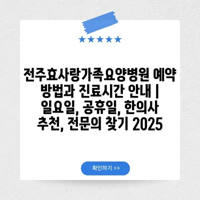 전주효사랑가족요양병원 예약 방법과 진료시간 공지 | 일요일, 공휴일, 한의사 추천, 전연락 찾기 2025에 대해 자주 묻는 질문 TOP 5
