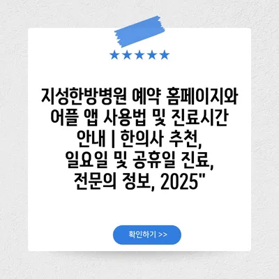 지성한방병원 예약 홈페이지와 어플 앱 사용법 및 진료시간 안내 | 한의사 추천, 일요일 및 공휴일 진료, 전문의 정보, 2025″