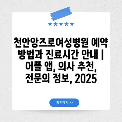 천안앙즈로여성병원 예약 방법과 진료시간 공지 | 어플 앱, 의사 추천, 전연락 정보, 2025에 대해 알아보겠습니다.