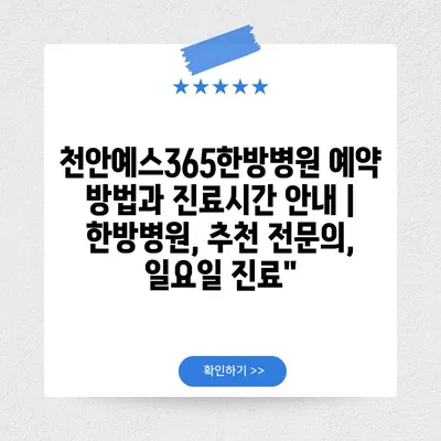 ✅ 천안예스365한방병원의 예약 방법과 진료시간을 지금 바로 알아보세요!