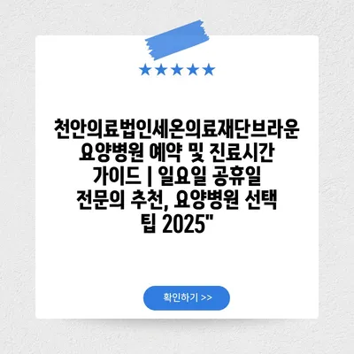 천안의료법인세온의료재단브라운요양병원 예약 및 진료시간 설명서 | 일요일 공휴일 전연락 추천, 요양병원 선택 팁 2025″ 에 대해 자주 묻는 질문 TOP 5