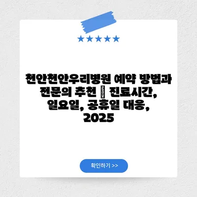 천안천안우리병원 예약 방법과 전연락 추천 | 진료시간, 일요일, 공휴일 대응, 2025에 대해 소개합니다.