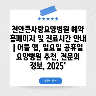 ✅ 천안큰사랑요양병원의 진료시간과 예약 방법을 알아보세요.