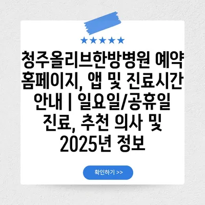 청주올리브한방병원 예약 홈페이지, 앱 및 진료시간 공지 | 일요일/공휴일 진료, 추천 의사 및 2025년 정보에 대해 자주 묻는 질문 TOP 5