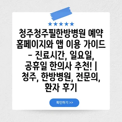 ✅ 청주청주필한방병원의 예약 방법과 진료 시간을 알아보세요!