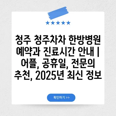 청주 청주차차 한방병원 예약과 진료시간 공지 | 어플, 공휴일, 전연락 추천, 2025년 최신 정보에 대해 자주 묻는 질문 TOP 5