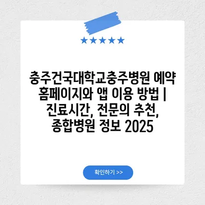 충주건국대학교충주병원 예약 홈페이지와 앱 이용 방법 | 진료시간, 전문의 추천, 종합병원 정보 2025