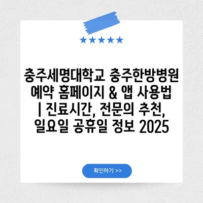 충주세명대학교 충주한방병원 예약 홈페이지 & 앱 사용법 | 진료시간, 전연락 추천, 일요일 공휴일 정보 2025에 대해 알아보겠습니다.
