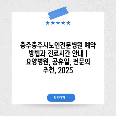 ✅ 충주충주시노인전문병원의 예약 절차를 쉽게 알아보세요.