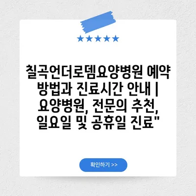✅ 칠곡언더로뎀요양병원의 진료시간과 예약 방법을 지금 바로 확인하세요!