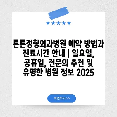 튼튼정형외과병원 예약 방법과 진료시간 안내 | 일요일, 공휴일, 전문의 추천 및 유명한 병원 정보 2025